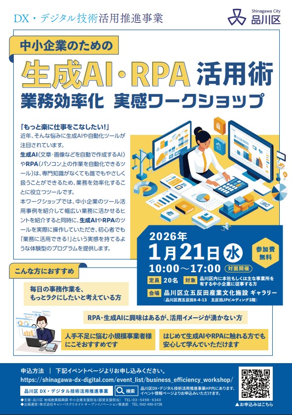 本ワークショップでは、中小企業のツール活用事例を紹介して幅広い業務に活かせるヒントを紹介すると同時に、